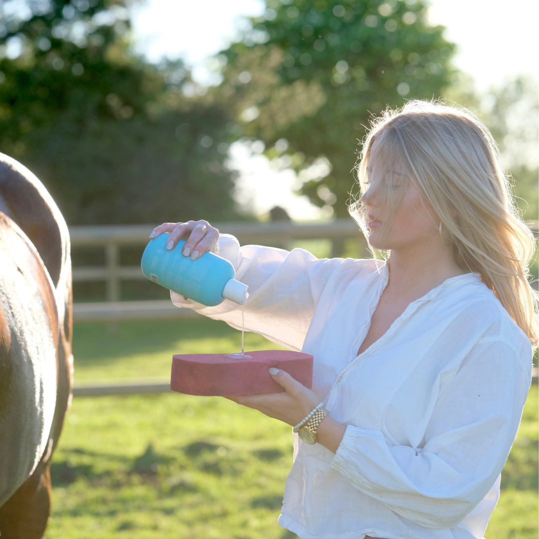 Jag har hämtat i princip all inspiration från produkter jag själv har hemma i badrummet. Under produktutvecklingen har jag förhållit mig till samma kriterier för de produkter jag använder i mitt eget hår. Jag är stolt över att få presentera en exklusiv kollektion av pälsvårdsprodukter, skapad med omsorg och som innehåller ingredienser som återfuktar, stärker och ger din häst ett magiskt glow.